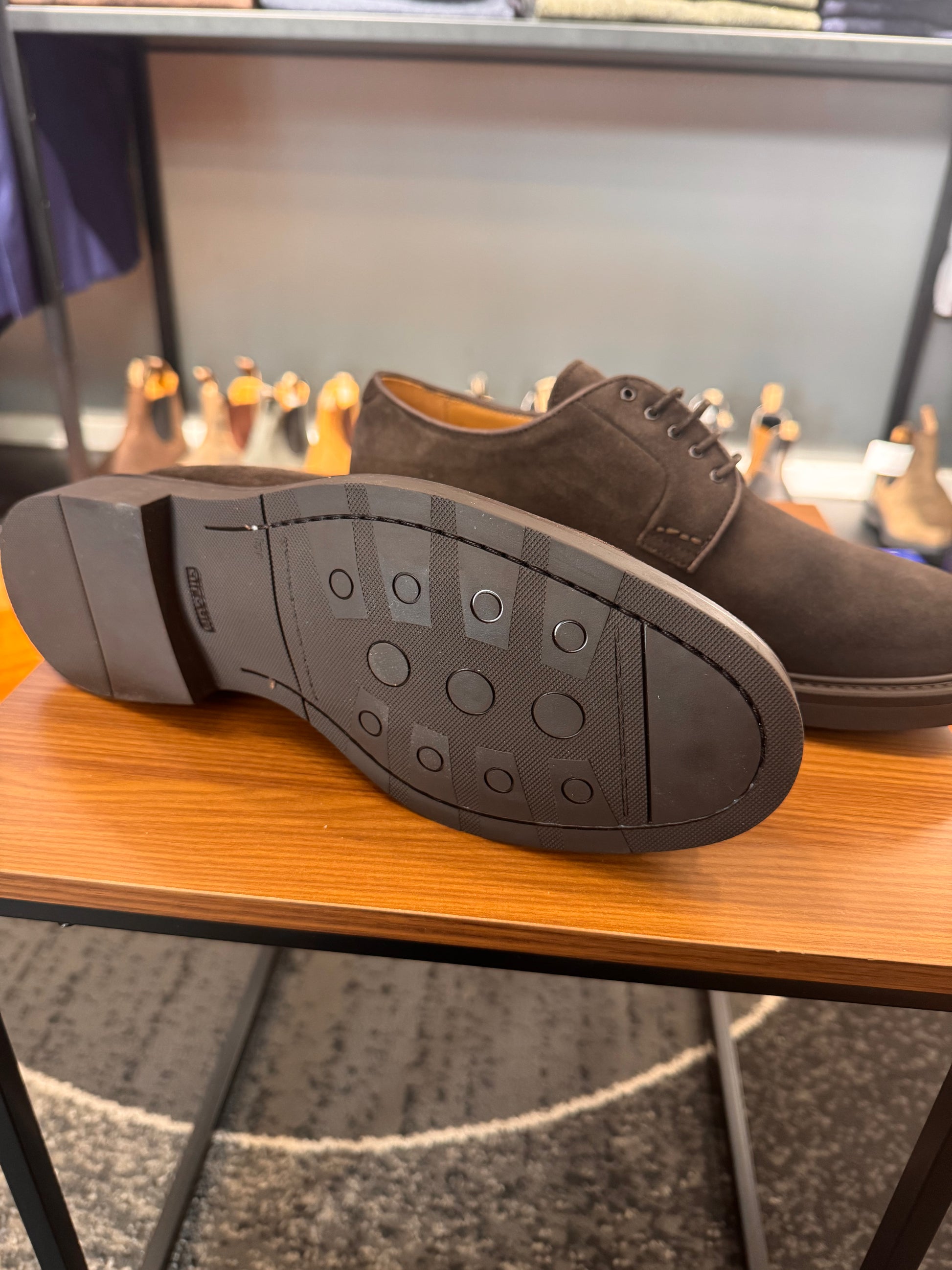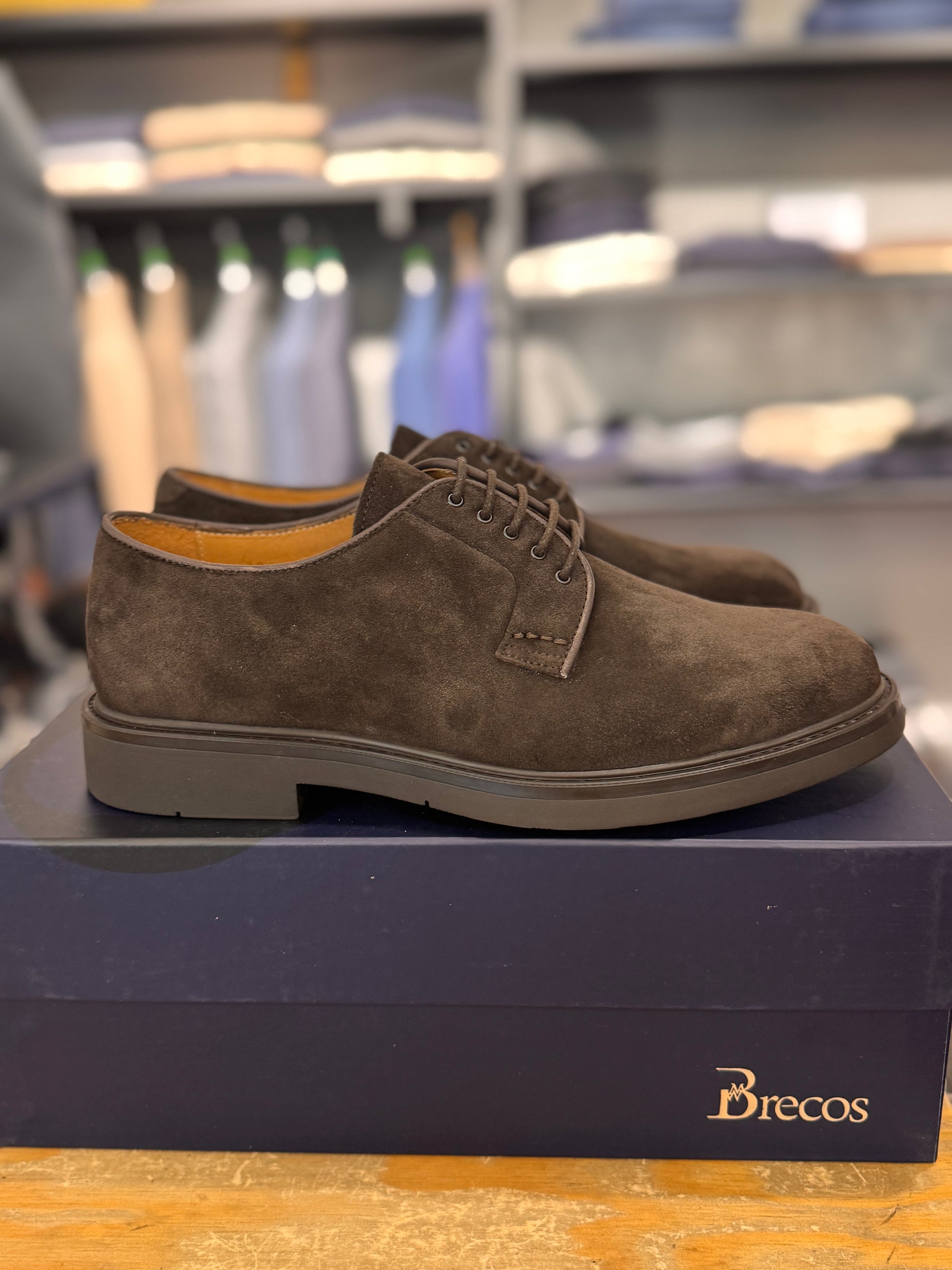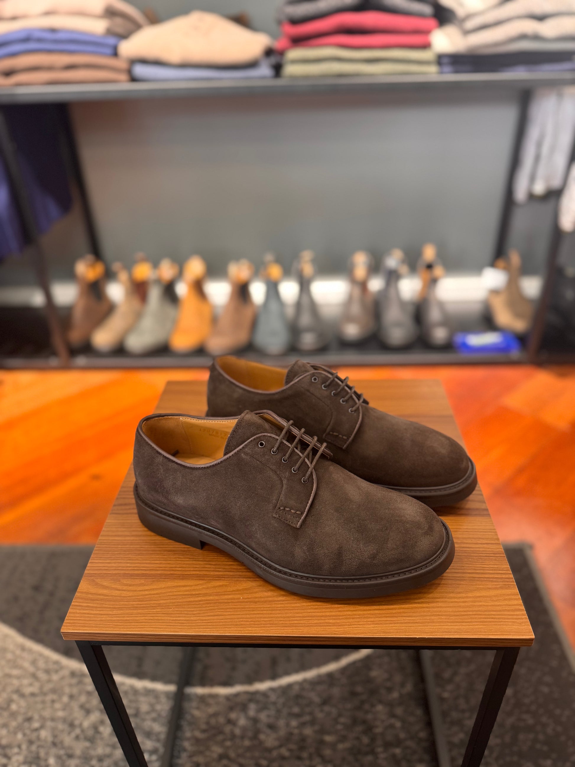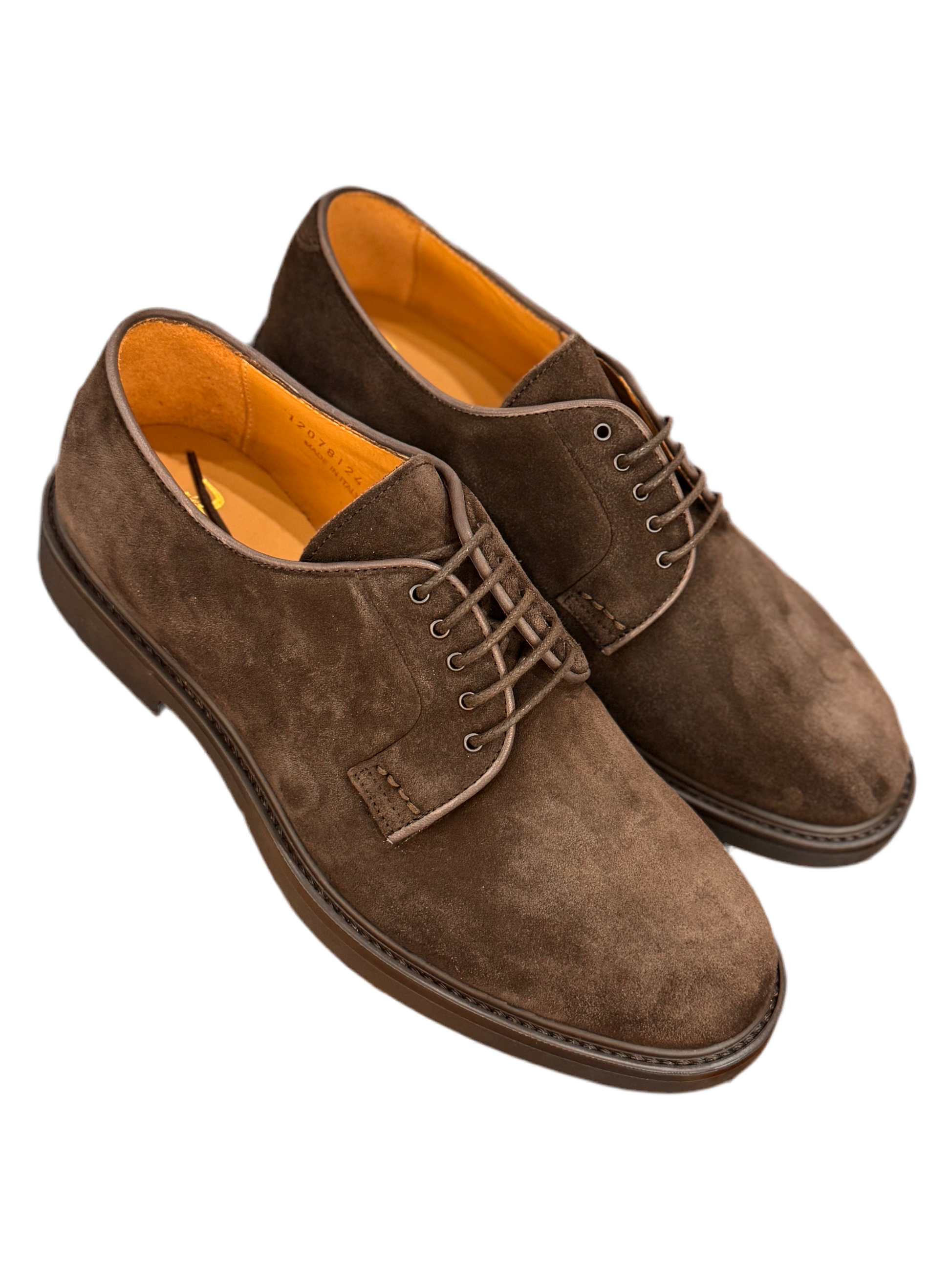 Derby uomo in camoscio gorain T.di Moro, perfetto per un look elegante e sofisticato. Il camoscio gorain offre una maggiore resistenza alle intemperie, mentre il colore marrone scuro dona un tocco di classe. Ideale per occasioni formali e casual, questo derby ti farà distinguere con stile.
