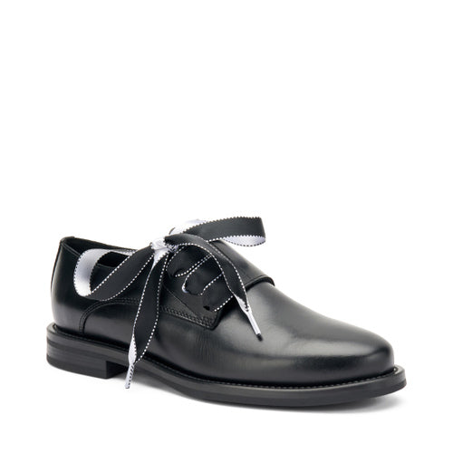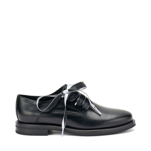 Derby in pelle elegante con allacciatura laterale e luminoso fiocco in raso, si esprime al meglio sia con un look romantico che con un completo sartoriale maschile