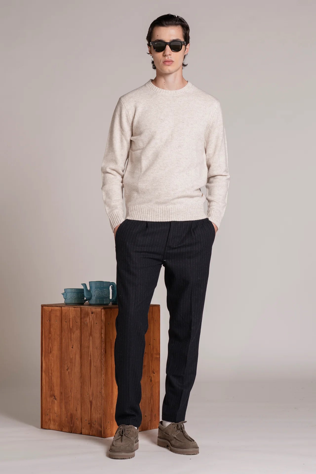 Maglione dal design essenziale, caratterizzato da collo girocollo e lavorazione in filato mouliné che crea un effetto mélange ricco di sfumature. La texture morbida e confortevole garantisce una piacevole vestibilità, mentre la linea pulita lo rende un capo versatile, facile da abbinare sia in outfit casual che in look più ricercati. Un classico intramontabile rivisitato con un tocco contemporaneo.