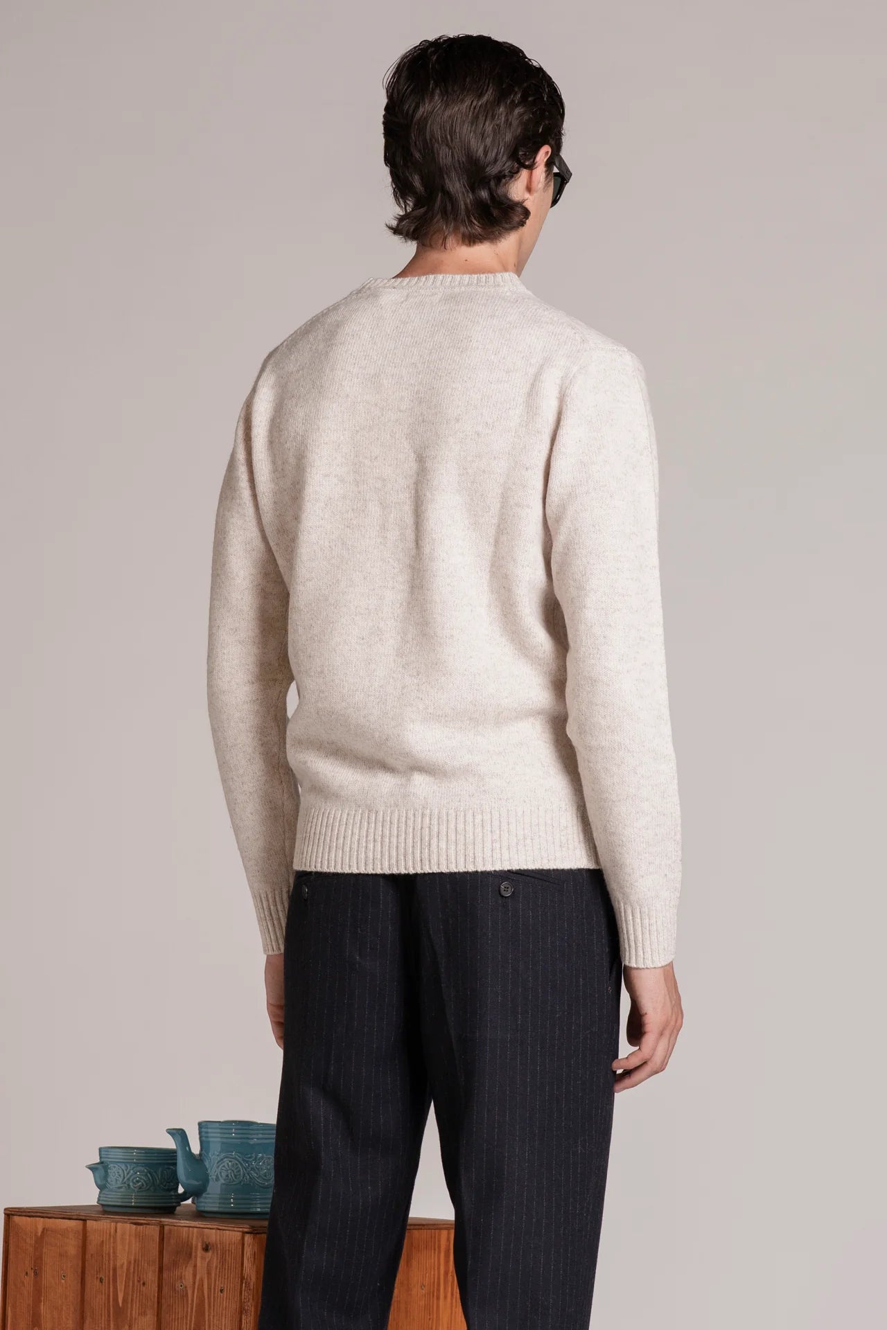 Maglia girocollo moulinè ecrù