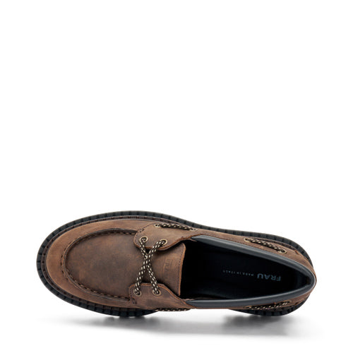 - Tomaia in pelle ingrassata dall'effetto aged con dettagli da barca.