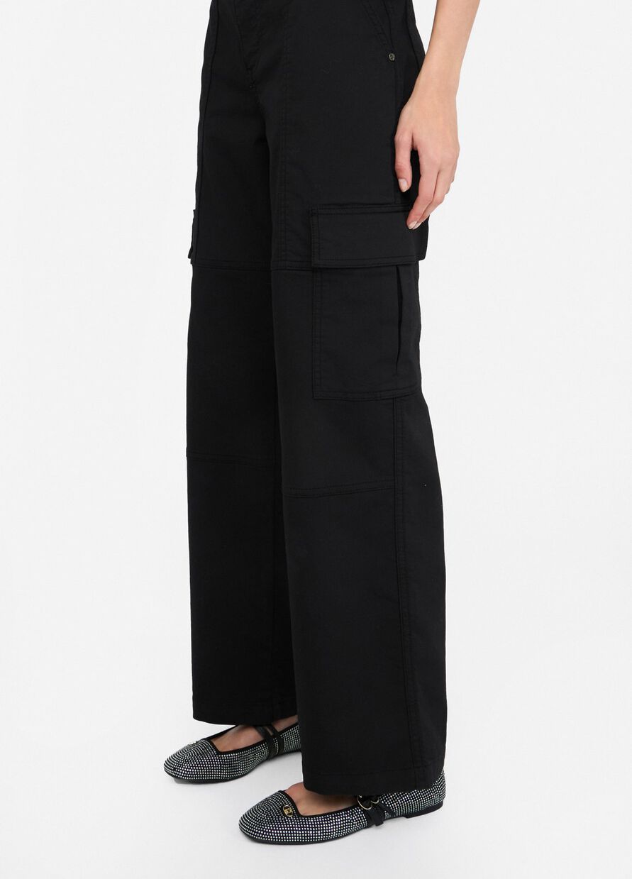 Questi pantaloni cargo neri Liu-Jo sono realizzati in morbido cotone stretch per garantire comfort e libertà di movimento. Il modello cargo presenta comode tasche e tasconi laterali, mentre la chiusura con zip e bottone garantisce una vestibilità perfetta. Versatili e di tendenza, perfetti per ogni occasione.