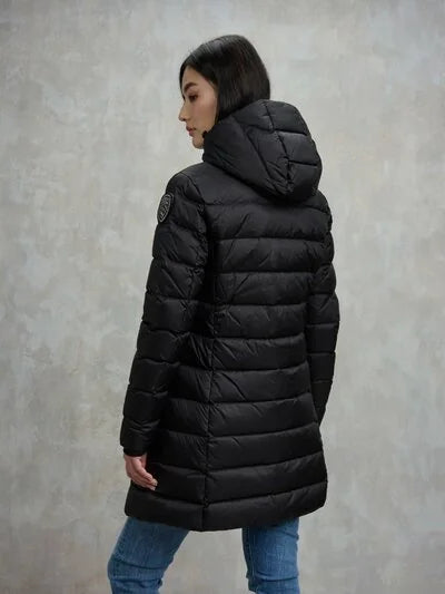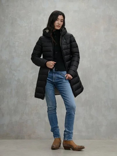 Piumino lungo idrorepellente trapuntato a righe orizzontali e interno in contrasto colore. Capo con imbottitura naturale leggera, calda e non ingombrante, dai colori fashion e dal taglio che risalta il punto vita.