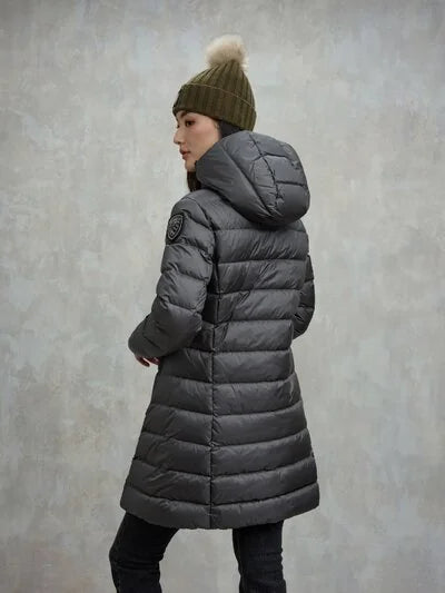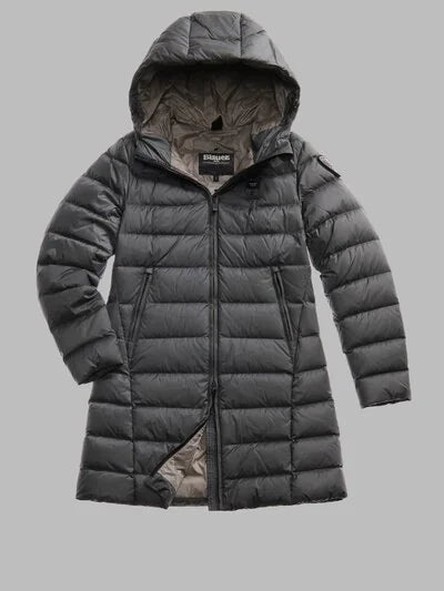 Piumino lungo idrorepellente trapuntato a righe orizzontali e interno in contrasto colore. Capo con imbottitura naturale leggera, calda e non ingombrante, dai colori fashion e dal taglio che risalta il punto vita.