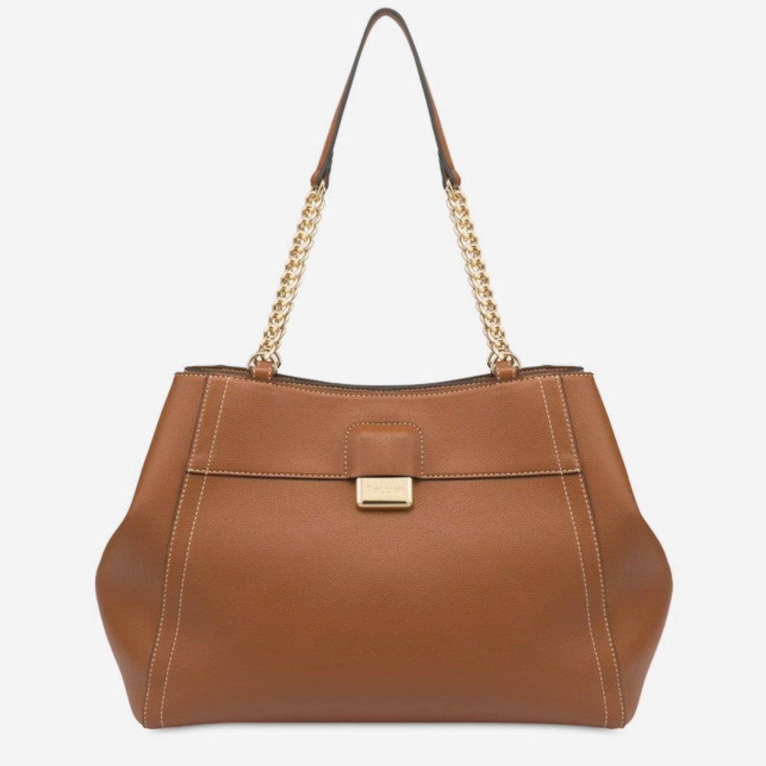 Borsa a spalla arricchita da una doppia cucitura. Placca metallica bombata incisa con il logo Pollini inserita con maestria sul quadrante frontale. Portabilità a spalla.