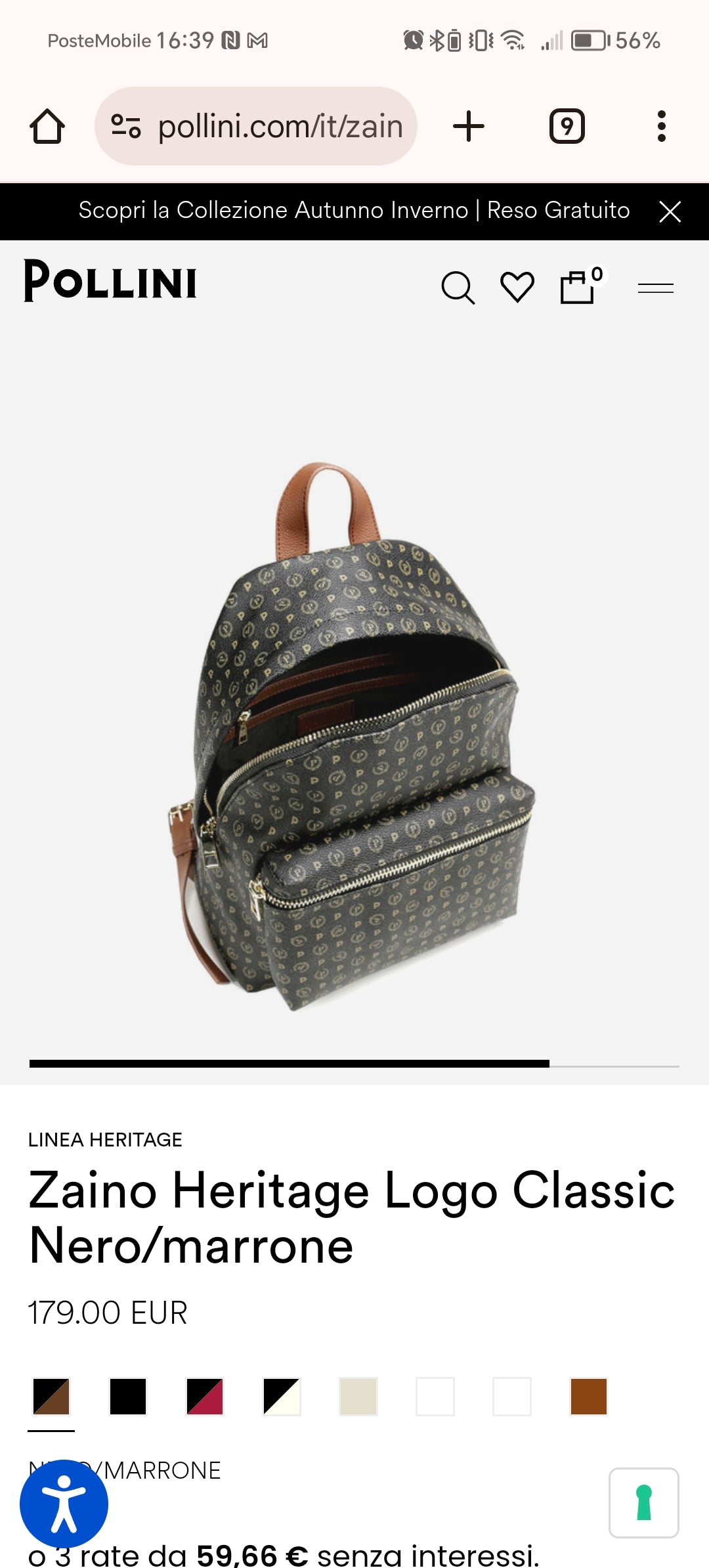 Pollini Zaino Heritage Logo Classic Nero/marrone