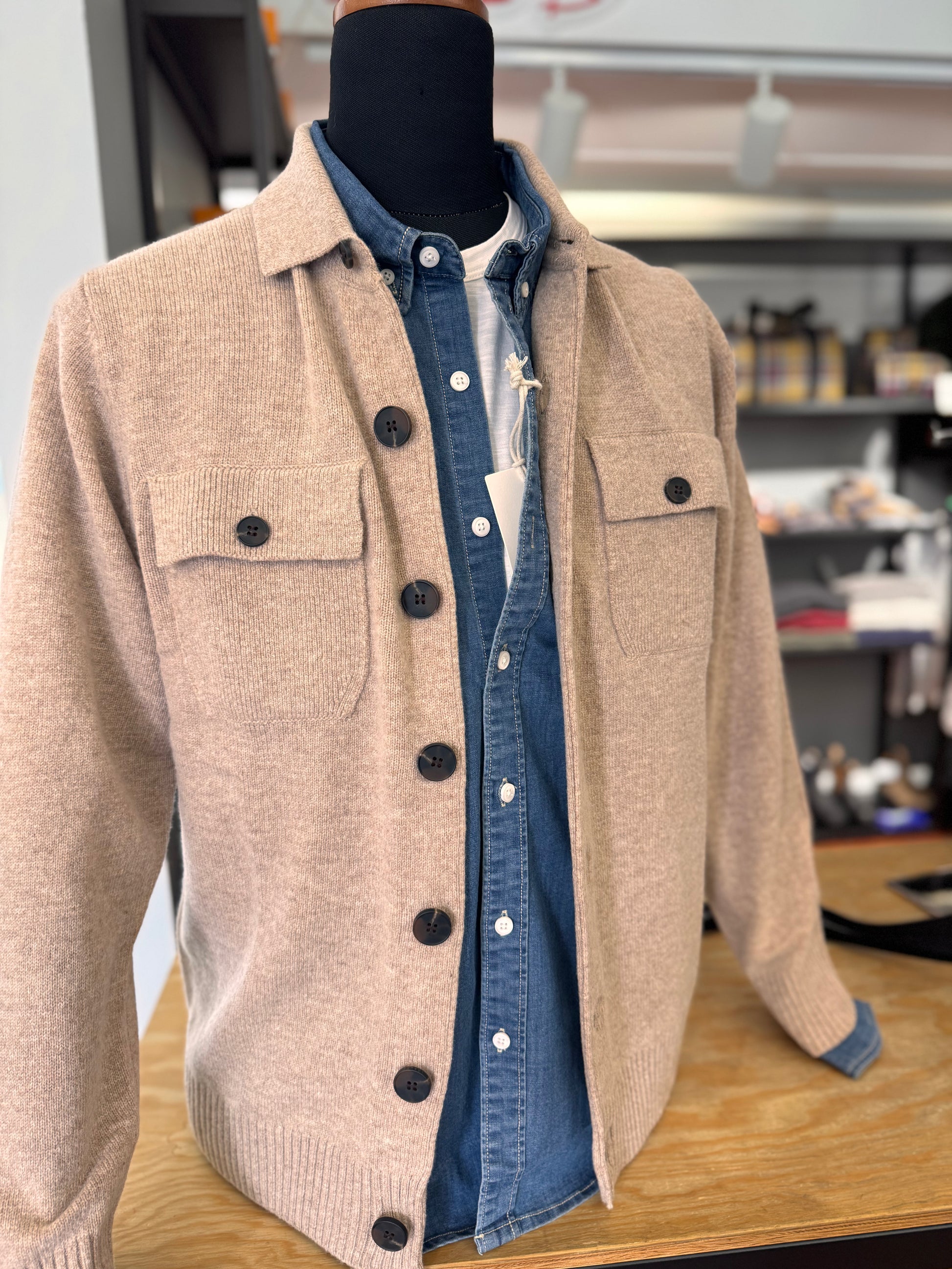 L'overshirt in lana beige è una scelta raffinata e versatile per il tuo guardaroba. Realizzato in morbida lana d'agnello, questo capo ti mantiene caldo e alla moda. Perfetto per un look casual o professionale, è l'aggiunta perfetta al tuo stile.Overshirt in lambswool beige